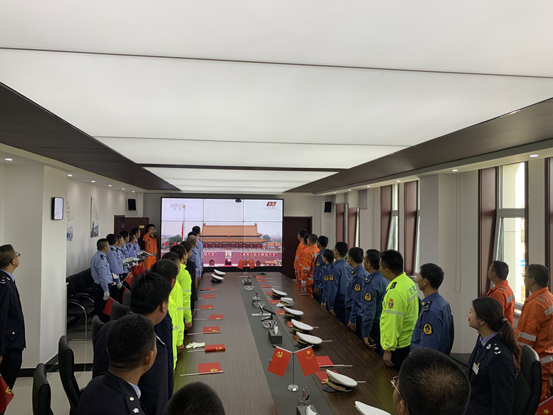 迎著第一縷朝陽(yáng),五星紅旗冉冉升起,飄揚(yáng)在項(xiàng)目部駐地上空,全體人員整齊列隊(duì),高唱《國(guó)歌》,表達(dá)對(duì)黨和祖國(guó)深切的熱愛(ài)和祝福。